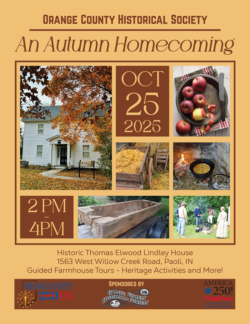 The Orange County Historical Society’s first meeting of 2025 will be Tuesday, March 25th 7 p.m. in the Paoli Library meeting room. Author Randy Mills will be our guest presenter discussing his brand-new book on Larry Bird. Prior to the program Randy will be doing a book signing at the library from 4 p.m. until the time of our meeting.
